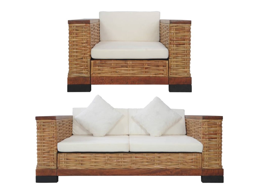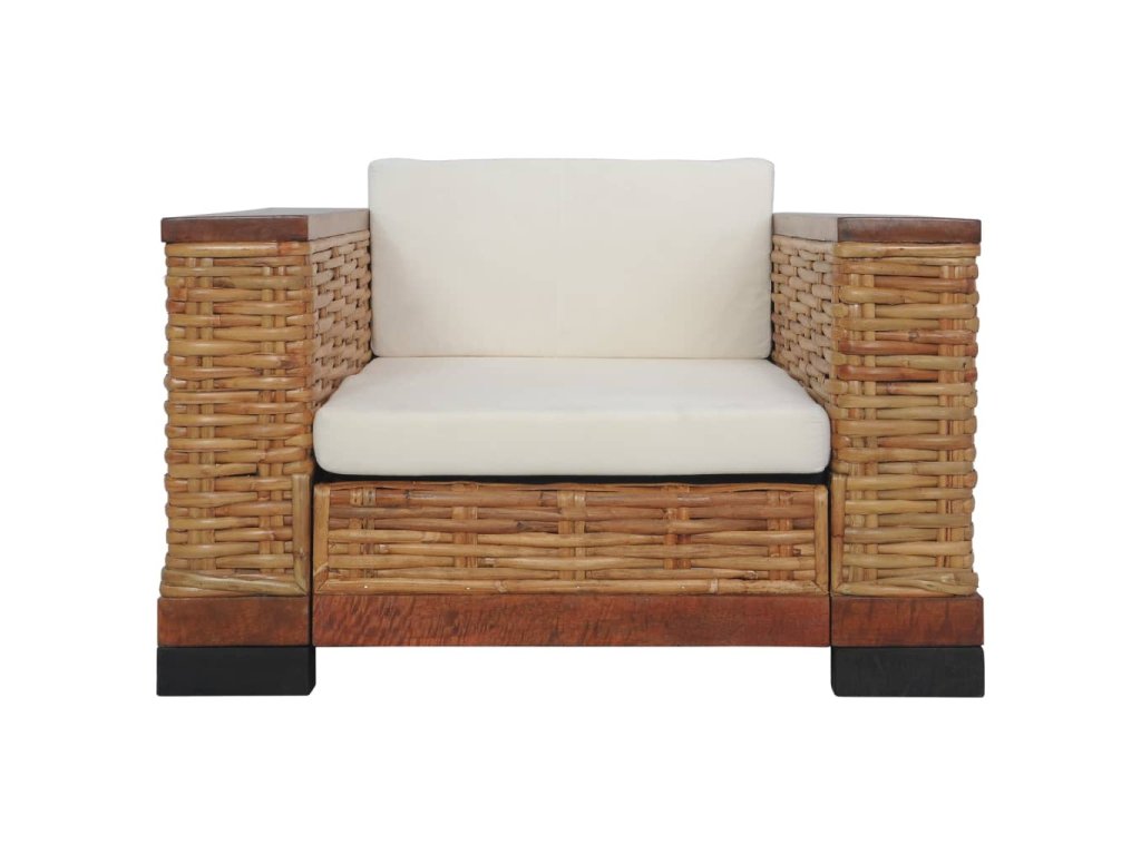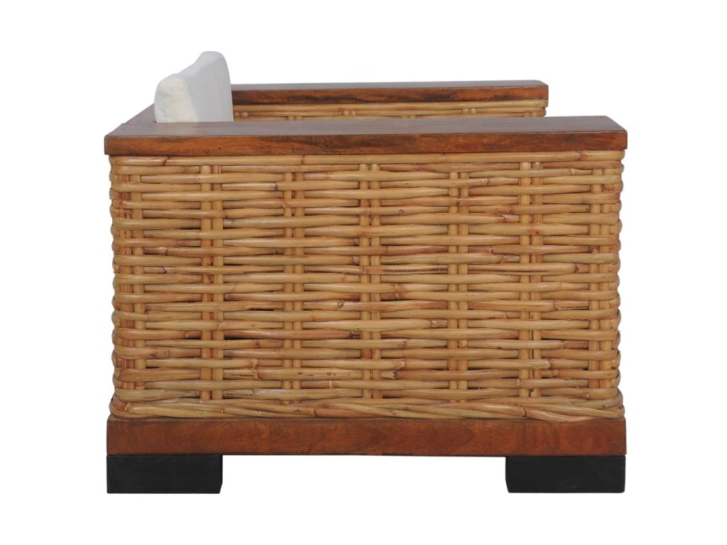 Souprava je vyrobena z pravého ratanu, je tudíž odolná, skvěle se hodí pro každodenní použití a zároveň se snadno čistí. Má robustní dřevěný rám, který se vyznačuje dlouhou životností a mimořádnou stabilitou. Tlusté podušky na sedák a na opěradlo se výborně přizpůsobí vašemu tělu a jejich snímatelné potahy se dají prát. Široké područky rovněž přispívají k pohodlnému posezení.