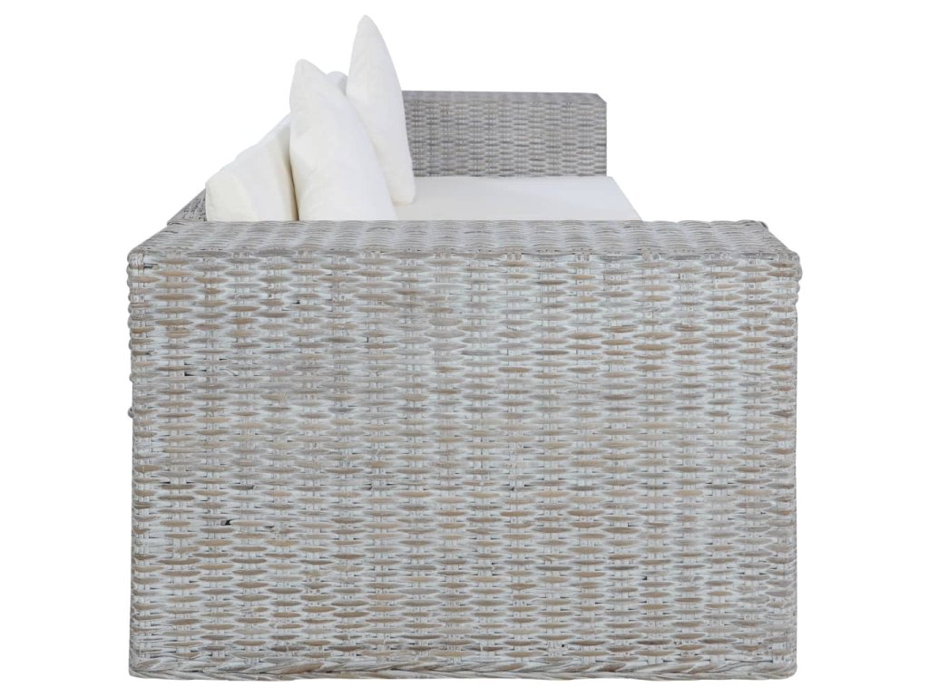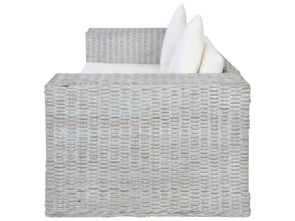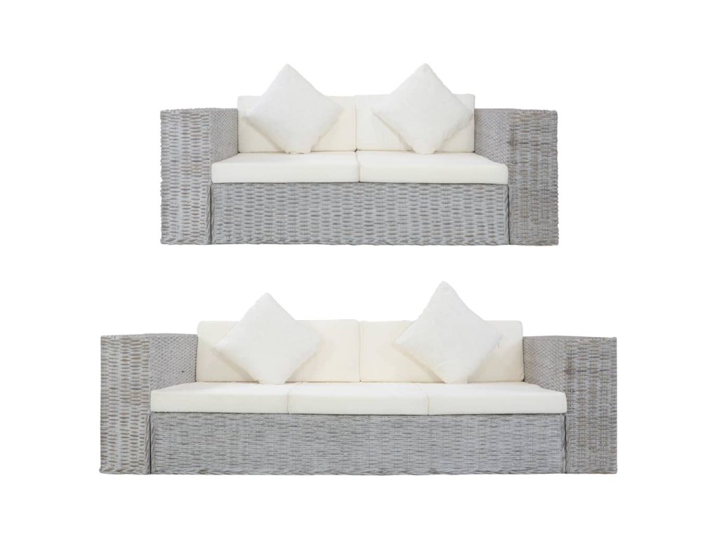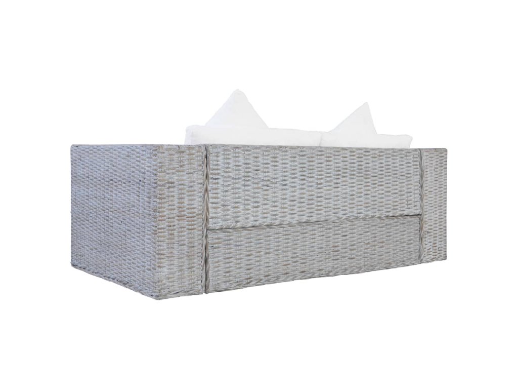 Souprava je vyrobena z pravého ratanu, je tudíž odolná, skvěle se hodí pro každodenní použití a zároveň se snadno čistí. Má robustní dřevěný rám, který se vyznačuje dlouhou životností a mimořádnou stabilitou. Tlusté podušky na sedák a na opěradlo se výborně přizpůsobí vašemu tělu a jejich snímatelné potahy se dají prát. Široké područky rovněž přispívají k pohodlnému posezení.
