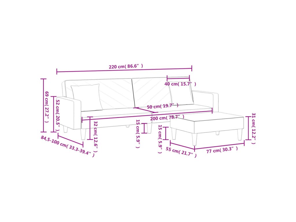 - Celkové rozměry: 220 x 84,5 x 69 cm (Š x H x V)