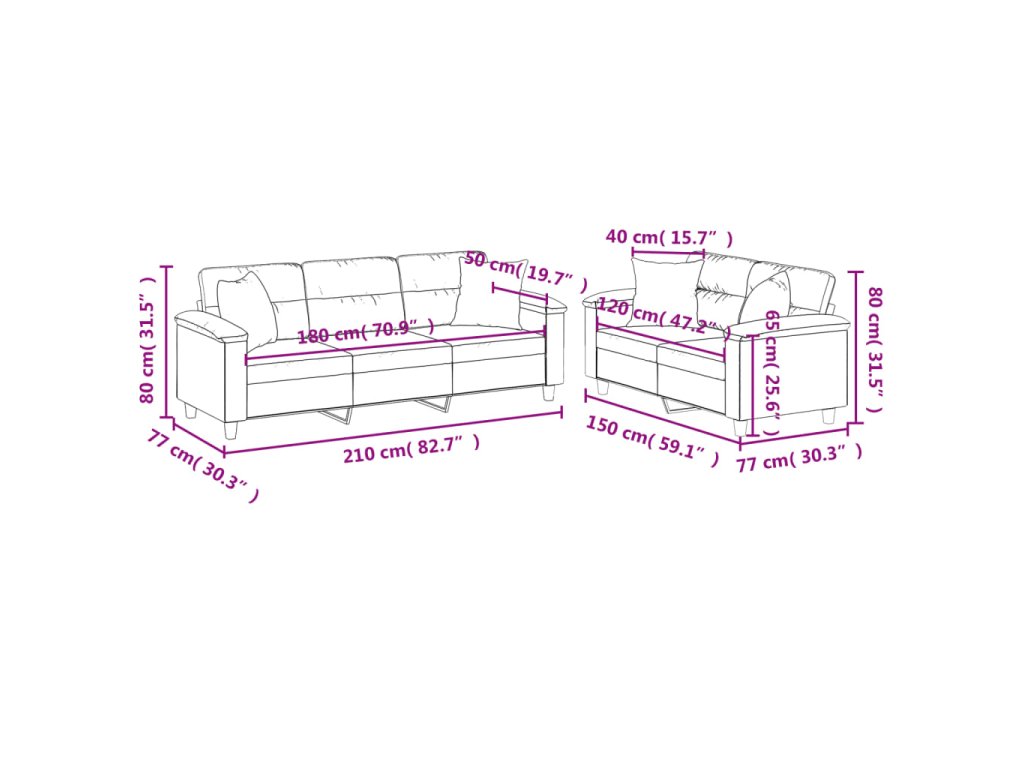 - Rozměry polštáře (každý): 40 x 40 cm (Š x H)