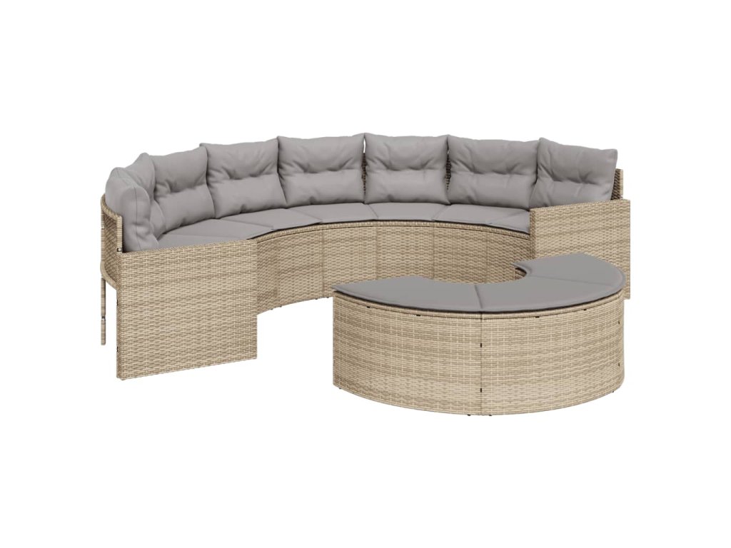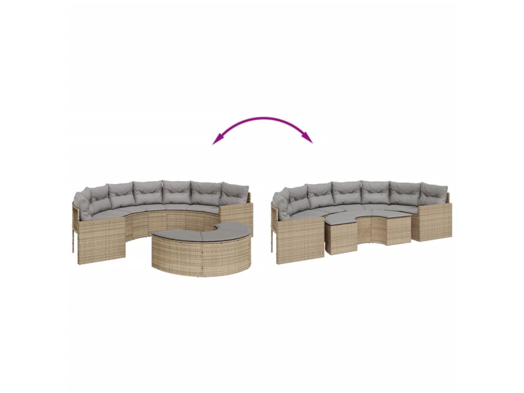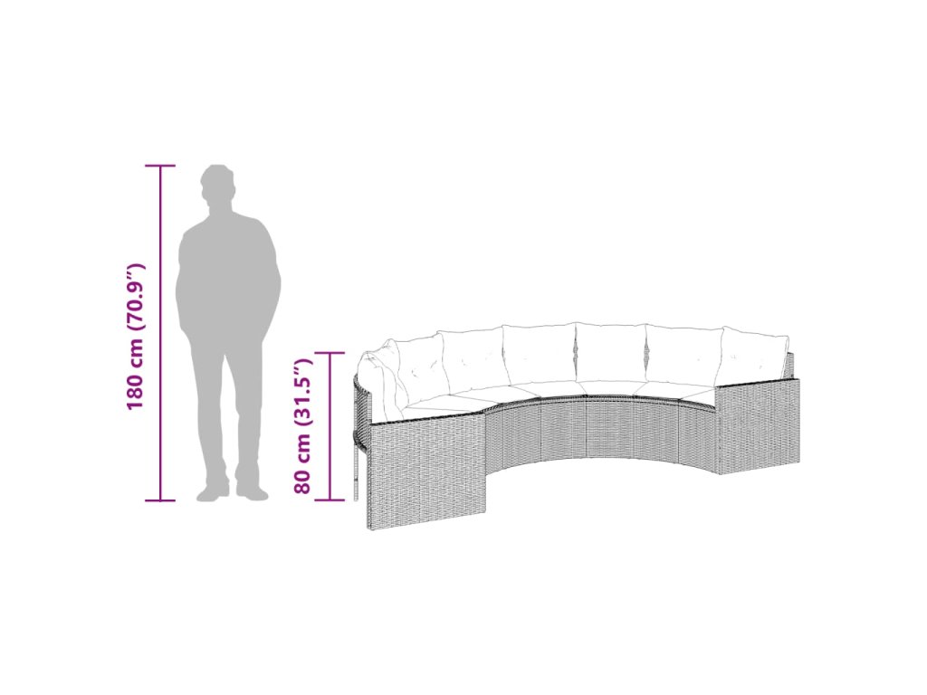 Tato půlkruhová zahradní sedací souprava je dokonalým doplňkem vaší zahrady, terasy nebo dvorku a poskytne vám pohodlné a příjemné místo, kde si můžete povídat s rodinou a přáteli nebo jen tak odpočívat a užívat si pobyt venku.