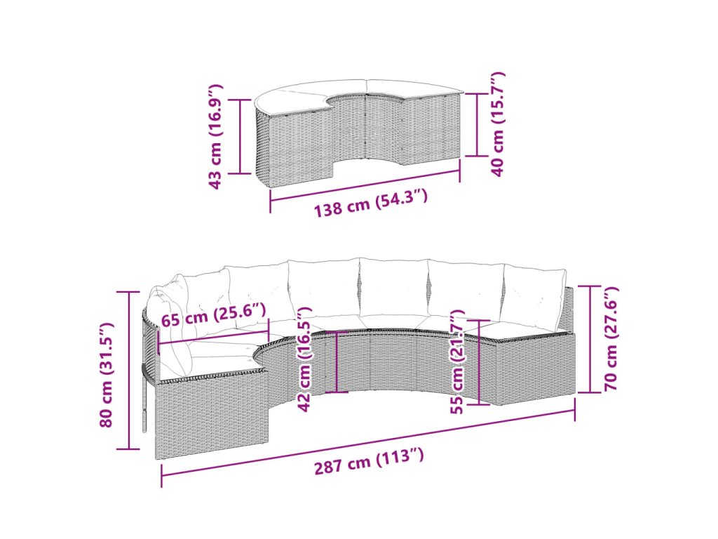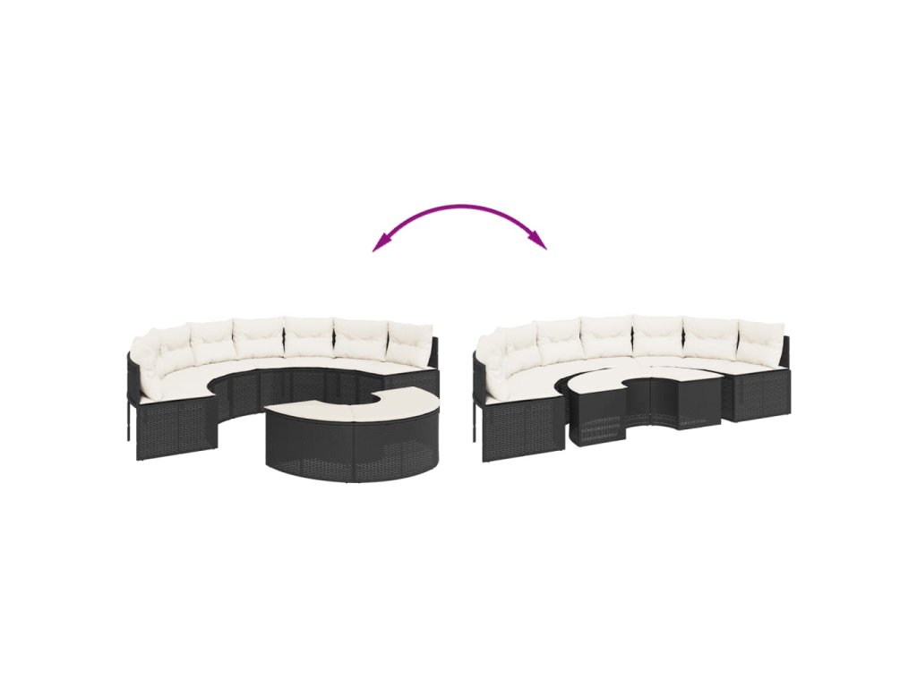Tato půlkruhová zahradní sedací souprava je dokonalým doplňkem vaší zahrady, terasy nebo dvorku a poskytne vám pohodlné a příjemné místo, kde si můžete povídat s rodinou a přáteli nebo jen tak odpočívat a užívat si pobyt venku.