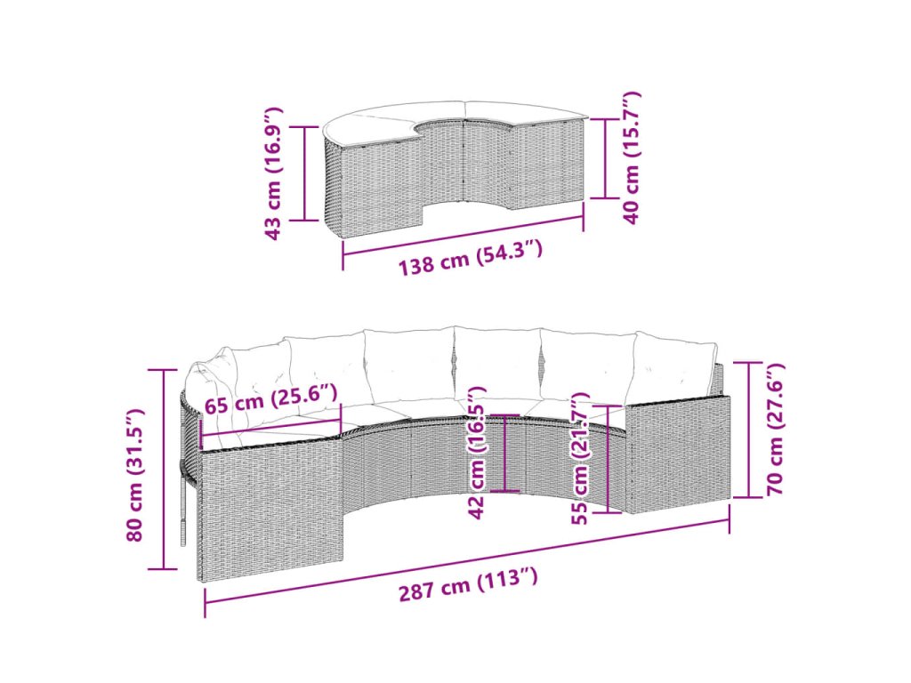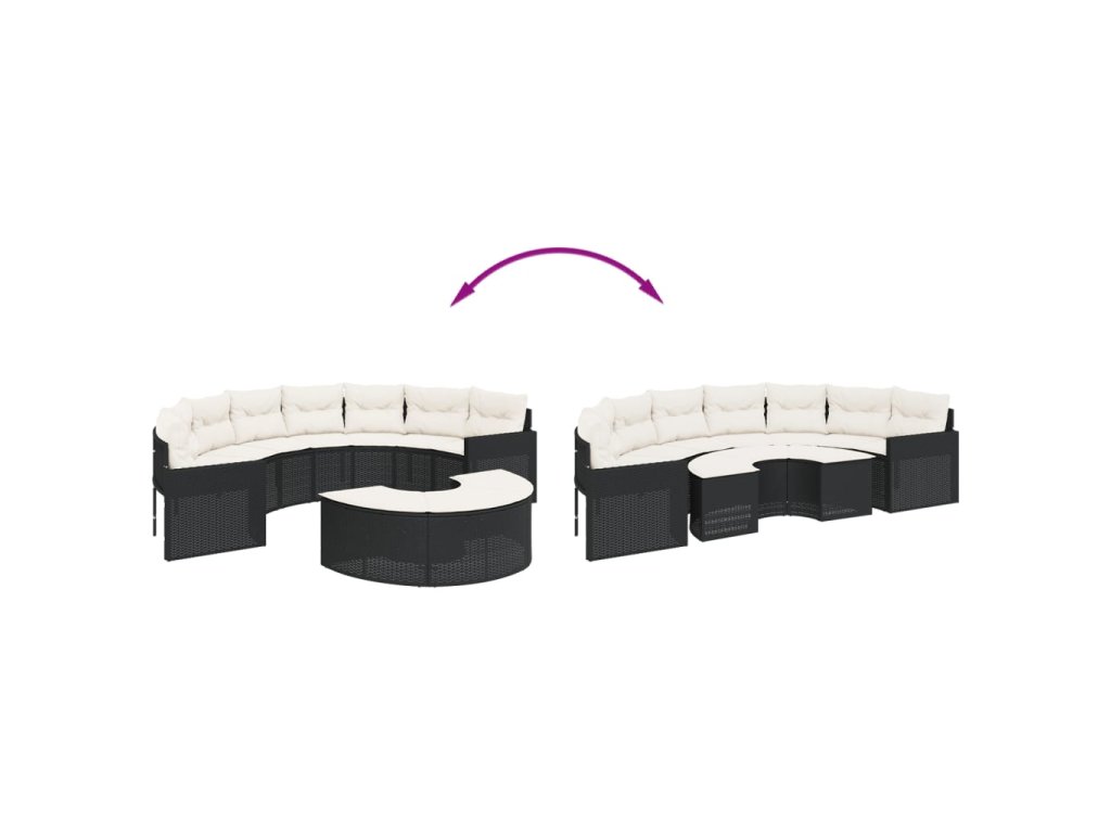 Tato půlkruhová zahradní sedací souprava je dokonalým doplňkem vaší zahrady, terasy nebo dvorku a poskytne vám pohodlné a příjemné místo, kde si můžete povídat s rodinou a přáteli nebo jen tak odpočívat a užívat si pobyt venku.
