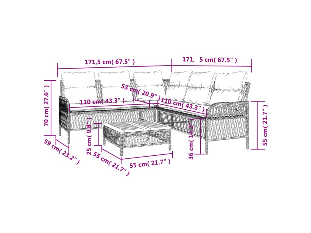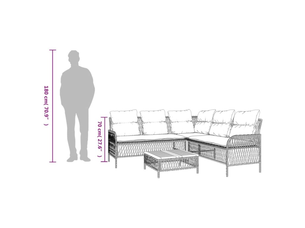 Tato zahradní sedací souprava je dokonalým doplňkem vaší zahrady, terasy nebo dvorku a poskytne vám pohodlné a příjemné místo, kde si můžete povídat s rodinou a přáteli nebo jen tak odpočívat a užívat si pobyt venku.