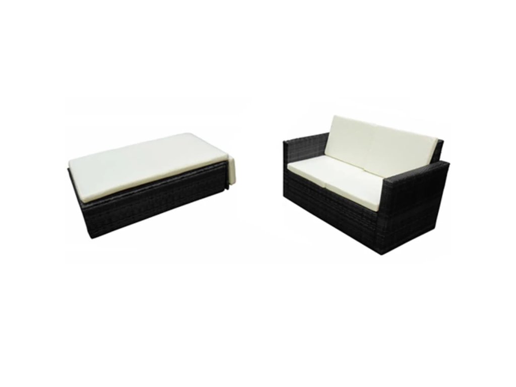 Balení obsahuje jednu 2místnou pohovku, jednu stoličku a pět podušek. Poznámka: Doporučujeme soupravu v dešti, sněhu a mrazu přikrýt.