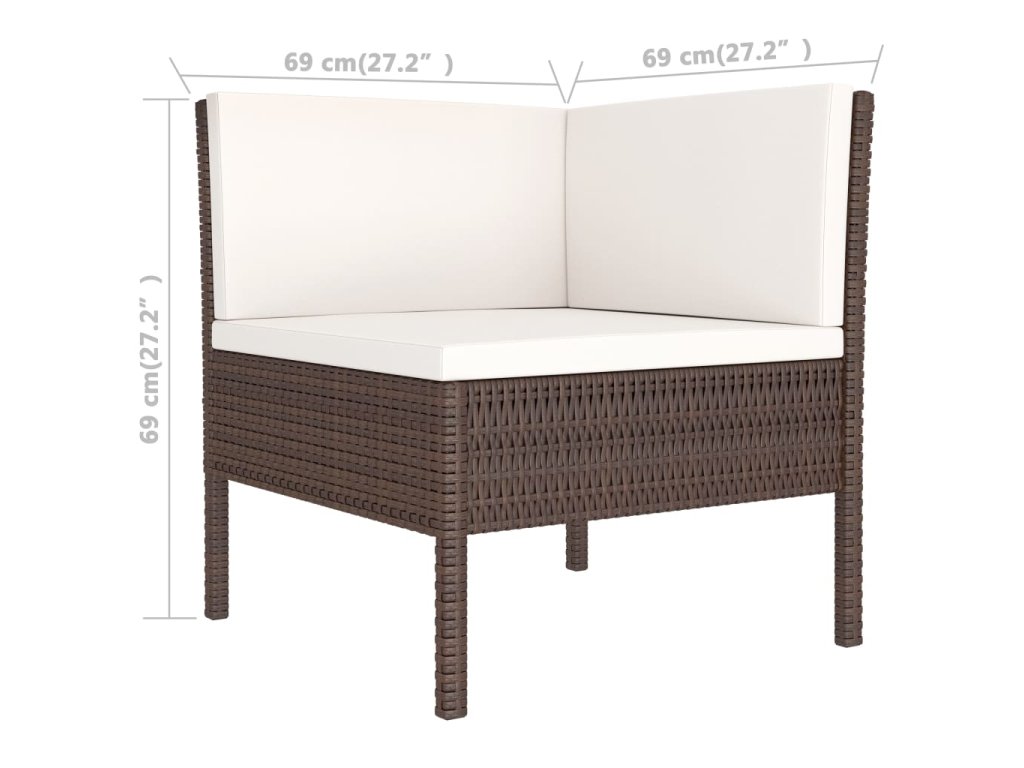 - Rozměry rohové pohovky: 69 x 69 x 69 cm (Š x H x V)