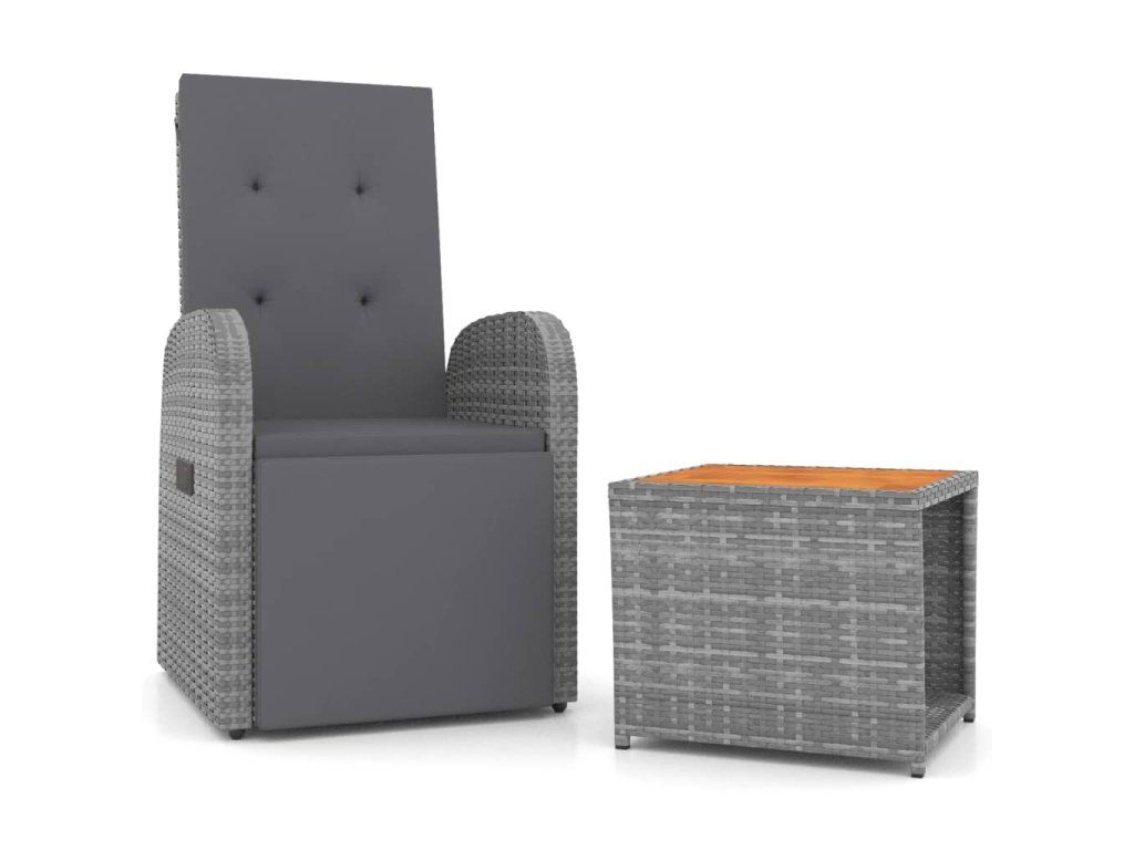 - Materiál: PE ratan, práškově lakovaná ocel, masivní akáciové dřevo s olejovou povrchovou úpravou