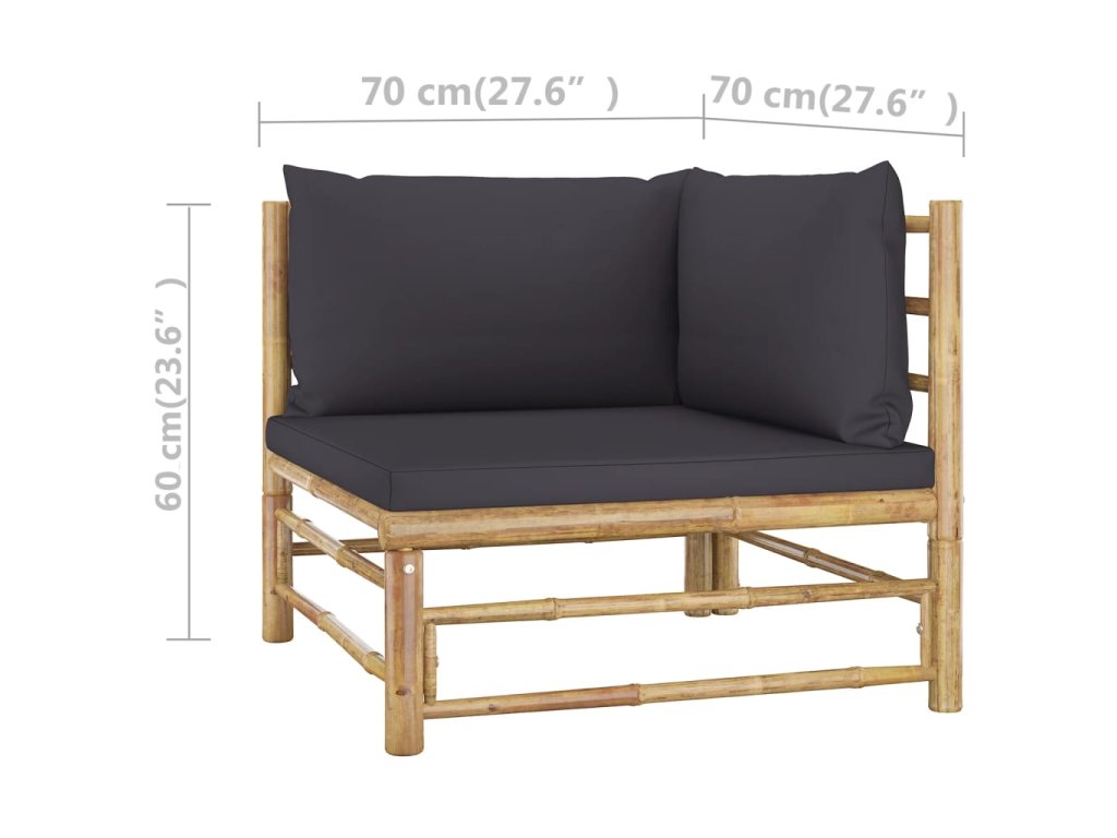 Zahradní sedací souprava je vyrobená z bambusu, takže je nesmírně odolná a snadno se čistí. Hustě polstrované podušky vám při lenošení zajistí ještě větší pohodlí. Jejich potahy mají zapínání na zip, aby se daly jednoduše sejmout a oprat. Lehká konstrukce nábytku umožňuje nenáročné přesouvání.