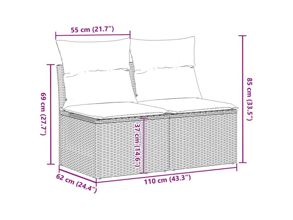 Tato zahradní sedací souprava je dokonalým doplňkem vaší zahrady, terasy nebo dvorku a poskytne vám pohodlné a příjemné místo, kde si můžete povídat s rodinou a přáteli nebo jen tak odpočívat a užívat si pobyt venku.