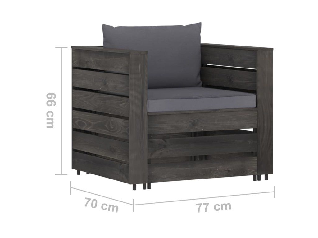 Sedací souprava z palet je zhotovená z impregnovaného borového dřeva, je tedy odolná a nepodléhá klimatickým vlivům. Zahradní sedací set má pevnou konstrukci a nevyžaduje téměř žádnou údržbu. Součástí balení jsou i měkké, silně polstrované podušky, sedací souprava je tudíž také velmi pohodlná. Modulární design soupravy umožňuje vytvářet různá uspořádání a kombinovat ji s dalšími modulárními segmenty podle vašich představ.