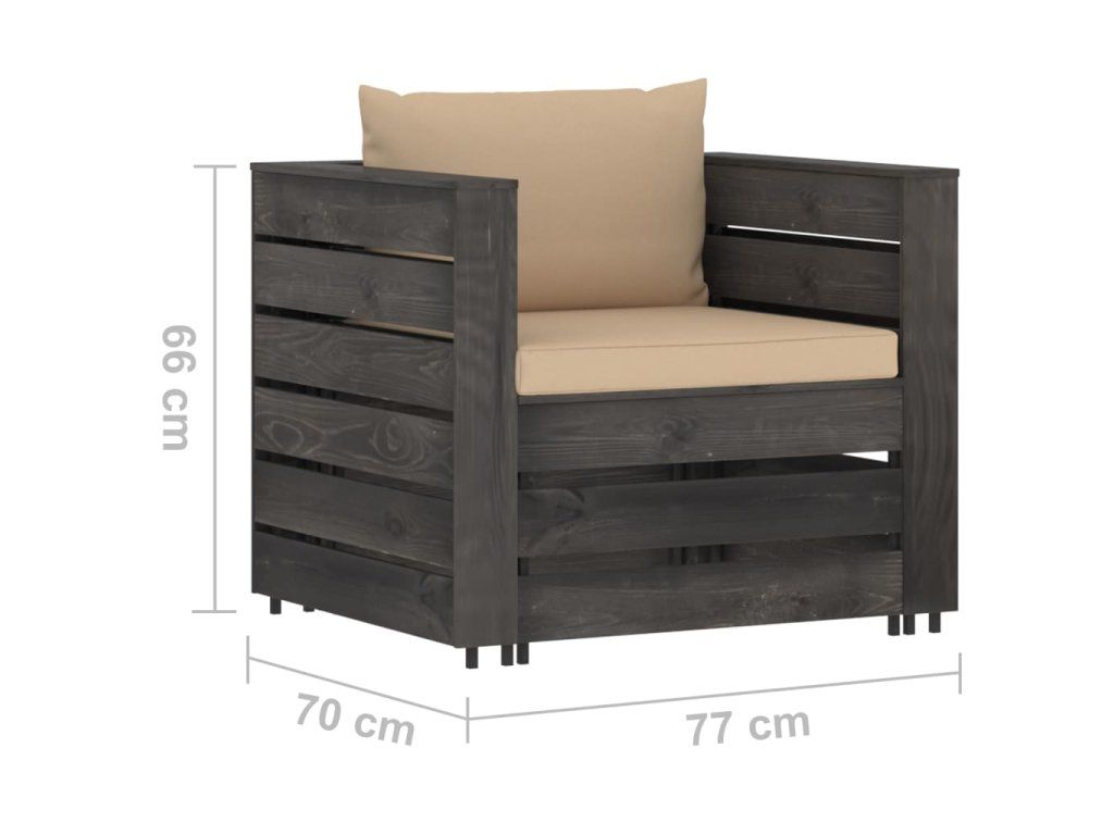 Sedací souprava z palet je zhotovená z impregnovaného borového dřeva, je tedy odolná a nepodléhá klimatickým vlivům. Zahradní sedací set má pevnou konstrukci a nevyžaduje téměř žádnou údržbu. Součástí balení jsou i měkké, silně polstrované podušky, sedací souprava je tudíž také velmi pohodlná. Modulární design soupravy umožňuje vytvářet různá uspořádání a kombinovat ji s dalšími modulárními segmenty podle vašich představ.
