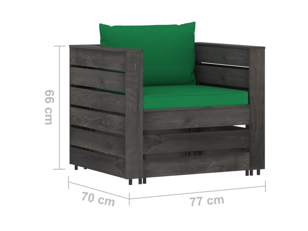 Sedací souprava z palet je zhotovená z impregnovaného borového dřeva, je tedy odolná a nepodléhá klimatickým vlivům. Zahradní sedací set má pevnou konstrukci a nevyžaduje téměř žádnou údržbu. Součástí balení jsou i měkké, silně polstrované podušky, sedací souprava je tudíž také velmi pohodlná. Modulární design soupravy umožňuje vytvářet různá uspořádání a kombinovat ji s dalšími modulárními segmenty podle vašich představ.