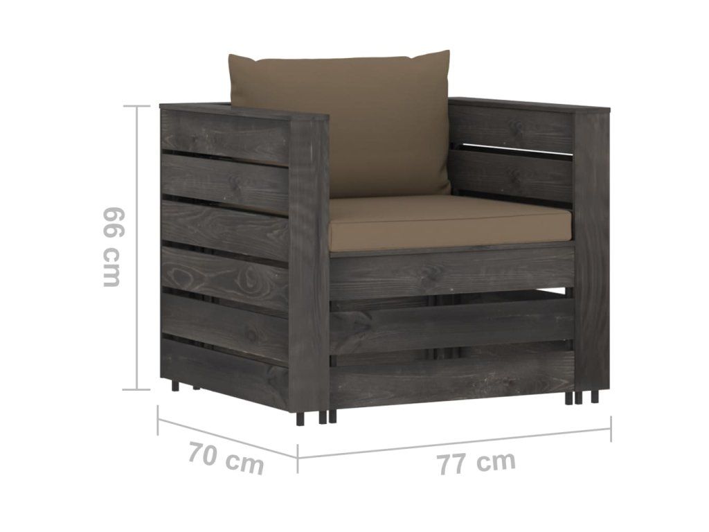 Sedací souprava z palet je zhotovená z impregnovaného borového dřeva, je tedy odolná a nepodléhá klimatickým vlivům. Zahradní sedací set má pevnou konstrukci a nevyžaduje téměř žádnou údržbu. Součástí balení jsou i měkké, silně polstrované podušky, sedací souprava je tudíž také velmi pohodlná. Modulární design soupravy umožňuje vytvářet různá uspořádání a kombinovat ji s dalšími modulárními segmenty podle vašich představ.