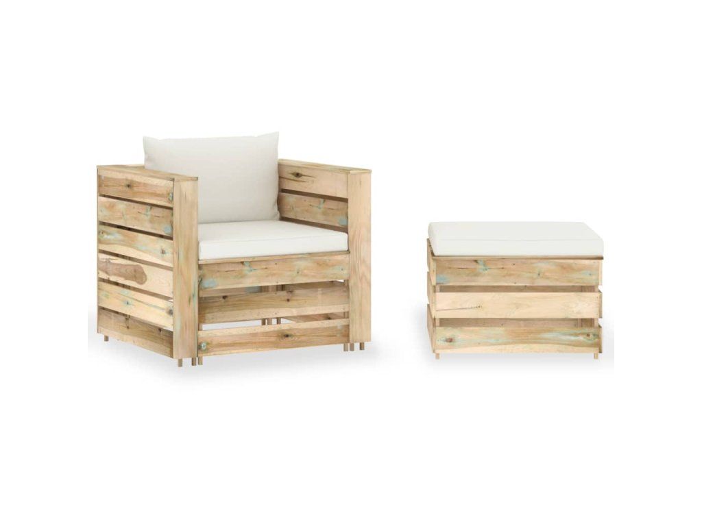 Sedací souprava z palet je zhotovená z impregnovaného borového dřeva, je tedy odolná a nepodléhá klimatickým vlivům. Zahradní sedací set má pevnou konstrukci a nevyžaduje téměř žádnou údržbu. Součástí balení jsou i měkké, silně polstrované podušky, sedací souprava je tudíž také velmi pohodlná. Modulární design soupravy umožňuje vytvářet různá uspořádání a kombinovat ji s dalšími modulárními segmenty podle vašich představ.