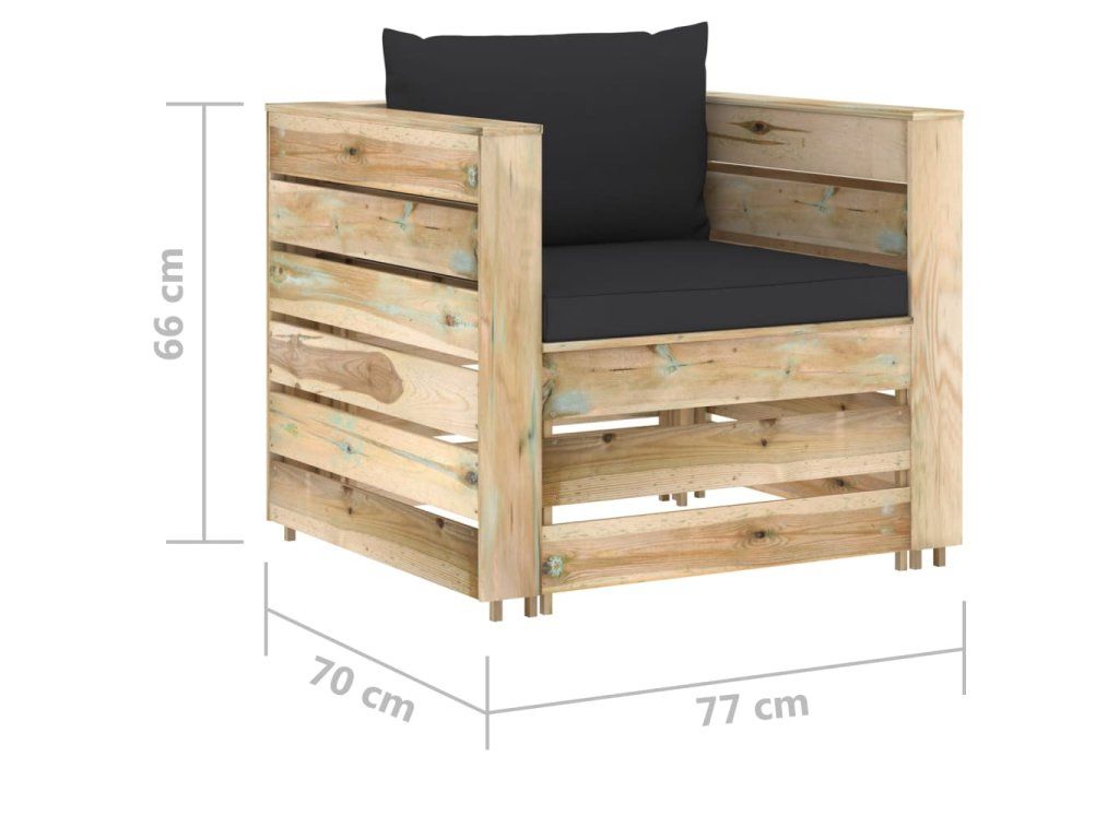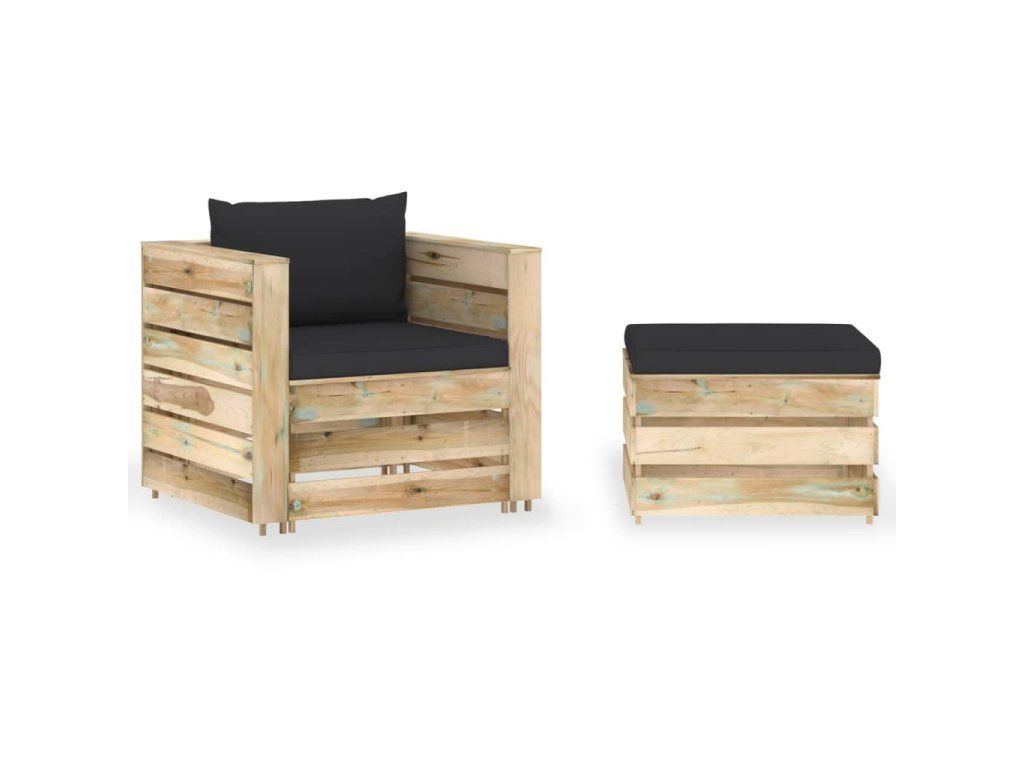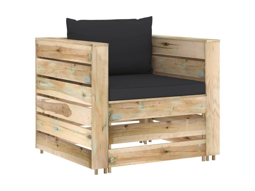Sedací souprava z palet je vyrobená z impregnovaného borového dřeva, takže toho hodně vydrží, výborně vzdoruje klimatickým vlivům a je šetrná k životnímu prostředí. Navíc má pevnou konstrukci a nevyžaduje téměř žádnou údržbu. V kombinaci se silně polstrovanými poduškami vám zahradní souprava sedaček poskytne mimořádné pohodlí. Nábytek má modulární design, lze ho proto bez námahy rozestavit dle vašich představ.