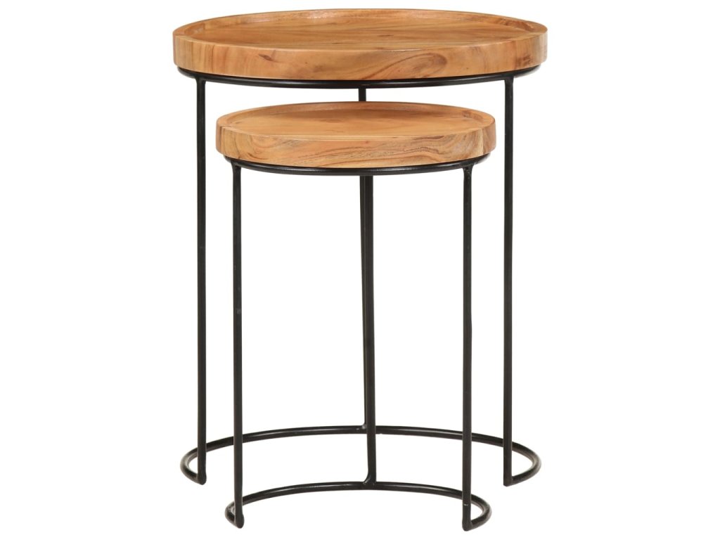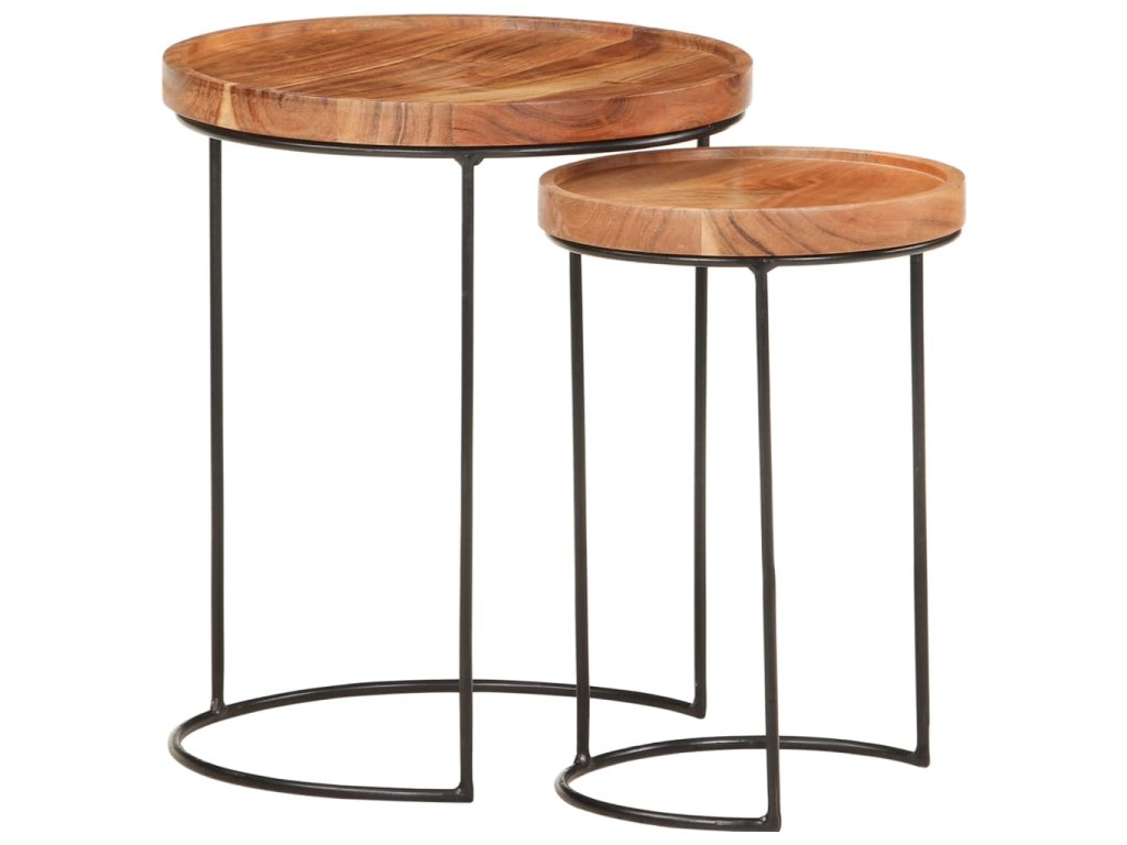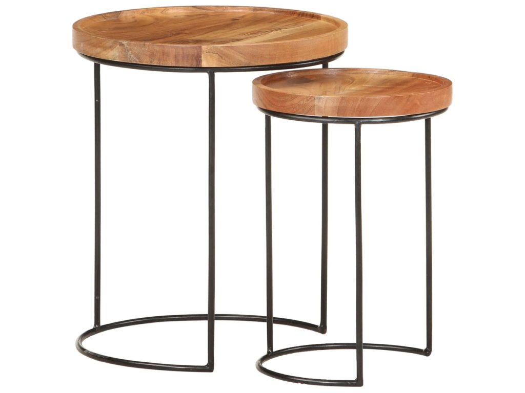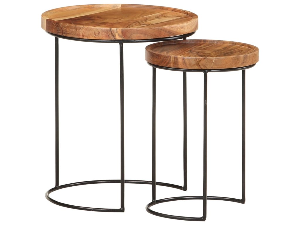 Tyto konferenční stolky jsou vyrobeny z akáciového dřeva, které je masivní a stabilní. Rámy jsou zhotoveny z oceli, což zvyšuje robustnost stolků. Krásná kresba dřeva propůjčuje každému kusu nábytku jeho jedinečný a od všech ostatních lehce odlišný vzhled. Tato sada dřevěných stolků nabízí 2 stolní desky, které jsou ideální k umístění jídla, nápojů a dalších nezbytností, kde je budete mít na dosah ruky.