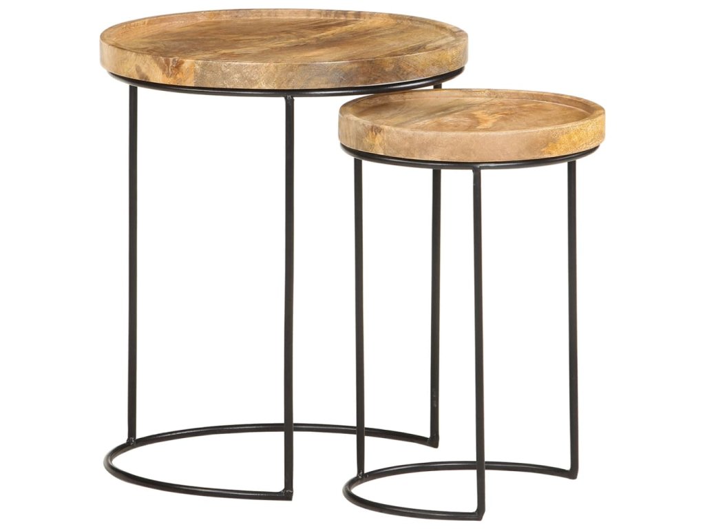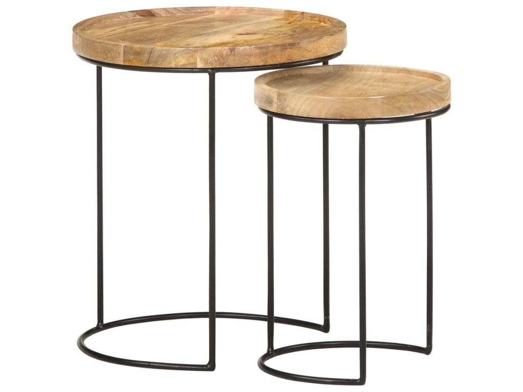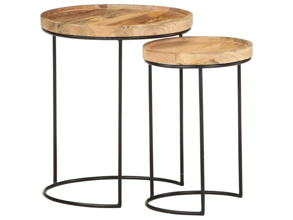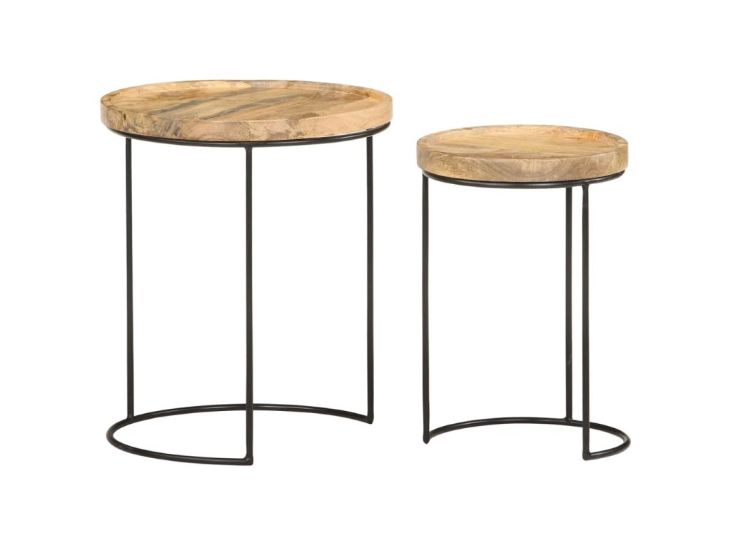 Tyto konferenční stolky jsou vyrobeny z mangovníkového dřeva, které je masivní a stabilní. Rámy jsou zhotoveny z oceli, což zvyšuje robustnost stolků. Krásná kresba dřeva propůjčuje každému kusu nábytku jeho jedinečný a od všech ostatních lehce odlišný vzhled. Tato sada dřevěných stolků nabízí 2 stolní desky, které jsou ideální k umístění jídla, nápojů a dalších nezbytností, kde je budete mít na dosah ruky.