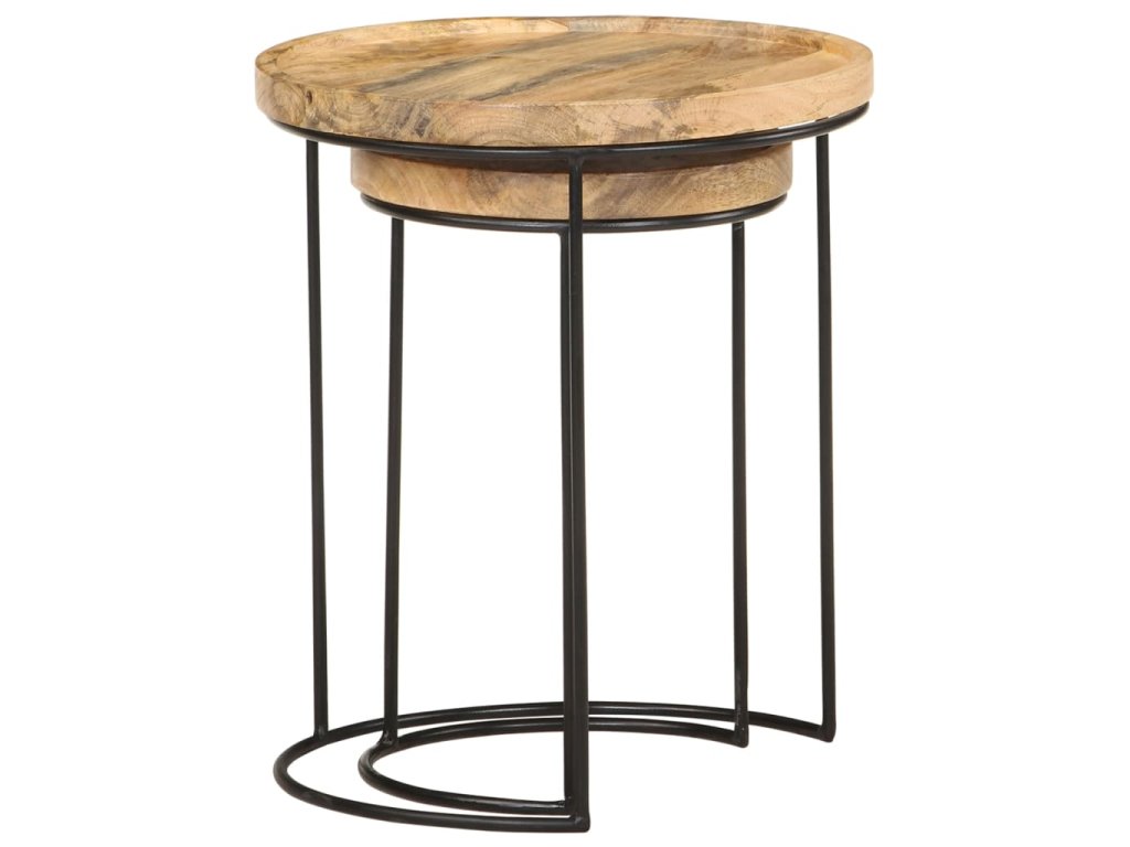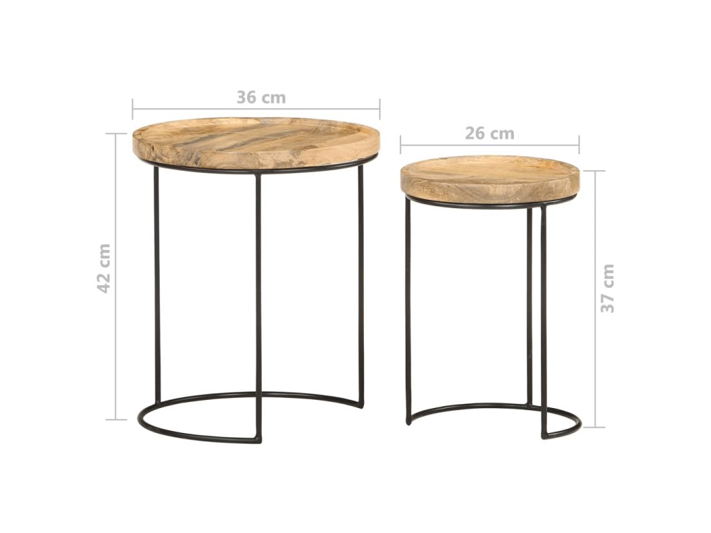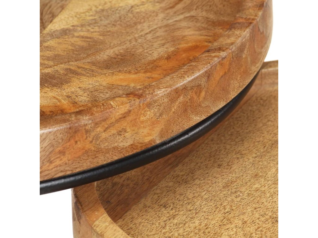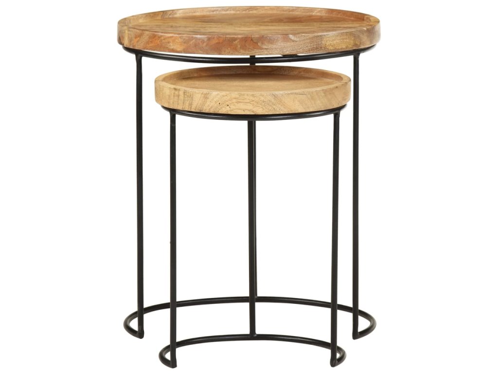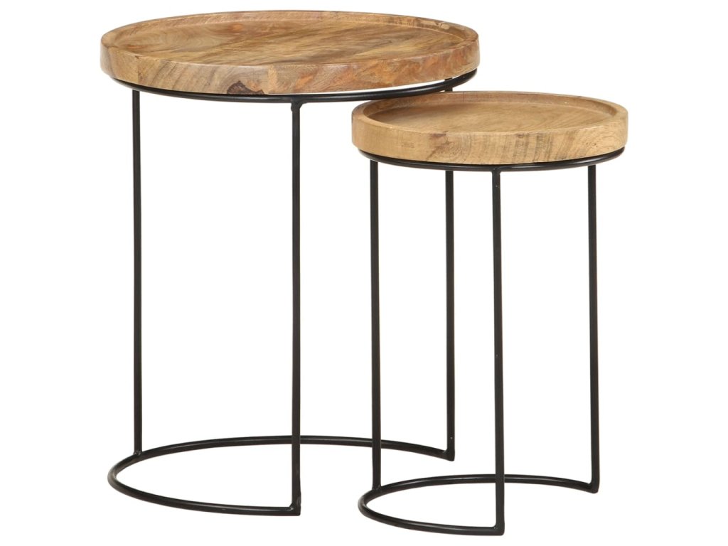 Tyto konferenční stolky jsou vyrobeny z mangovníkového dřeva, které je masivní a stabilní. Rámy jsou zhotoveny z oceli, což zvyšuje robustnost stolků. Krásná kresba dřeva propůjčuje každému kusu nábytku jeho jedinečný a od všech ostatních lehce odlišný vzhled. Tato sada dřevěných stolků nabízí 2 stolní desky, které jsou ideální k umístění jídla, nápojů a dalších nezbytností, kde je budete mít na dosah ruky.