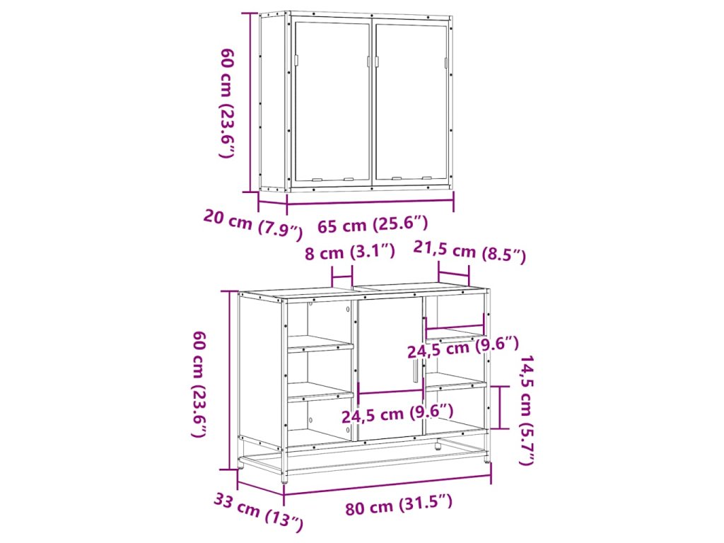 - Rozměry umyvadlové skříňky: 80 x 33 x 60 cm (Š x H x V)
