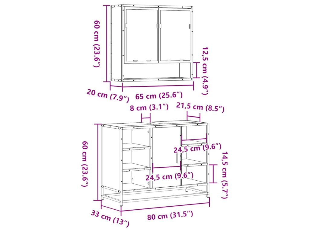 - Rozměry koupelnové skříňky s umyvadlem: 80 x 33 x 60 cm (Š x H x V)
