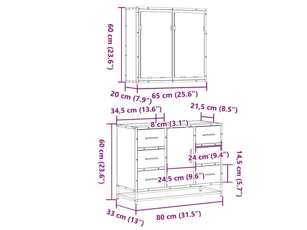 - Rozměry umyvadlové skříňky: 80 x 33 x 60 cm (Š x H x V)