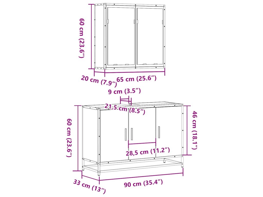 - Rozměry umyvadlové skříňky: 90 x 33 x 60 cm (Š x H x V)