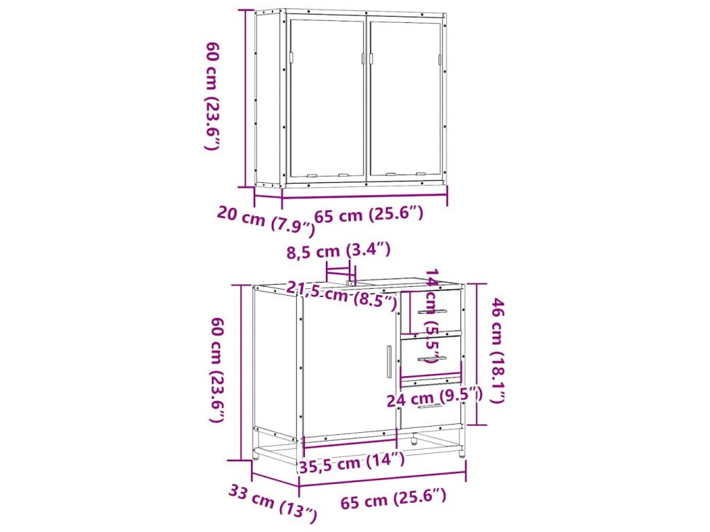- Rozměry zrcadlové skříňky: 65 x 20 x 60 cm (Š x H x V)