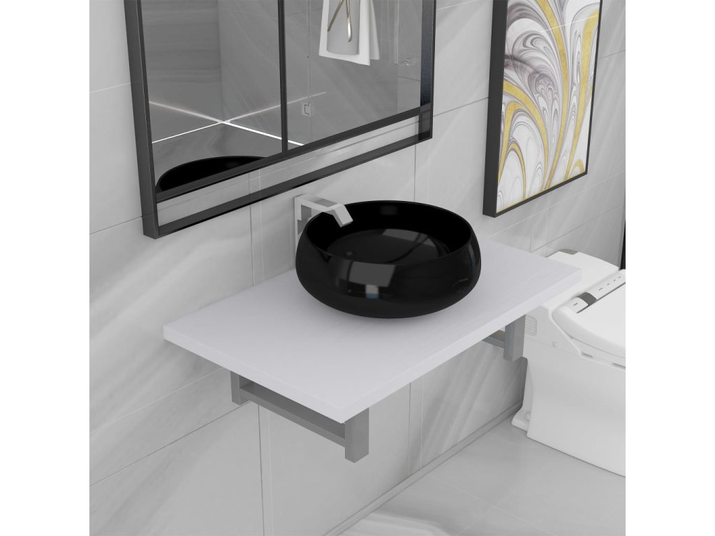Koupelnová nástěnná police z pevného materiálu je výjimečně stabilní a odolná a perfektně doplňuje keramické umyvadlo. Toto keramické umyvadlo s vysoce lesklou povrchovou úpravou se snadno čistí vlhkým hadříkem. Polici můžete snadno upevnit ke zdi, potřebné držáky a montážní materiály jsou součástí balení.