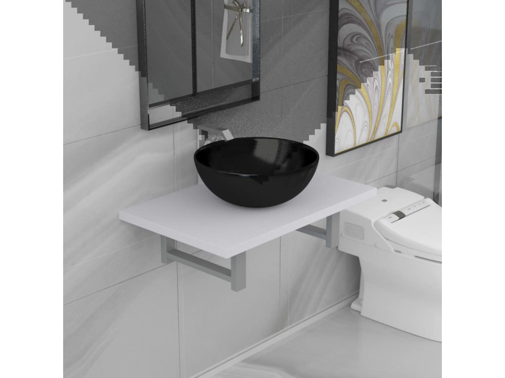 Koupelnová nástěnná police z pevného materiálu je výjimečně stabilní a odolná a perfektně doplňuje keramické umyvadlo. Toto keramické umyvadlo s vysoce lesklou povrchovou úpravou se snadno čistí vlhkým hadříkem. Polici můžete snadno upevnit ke zdi, potřebné držáky a montážní materiály jsou součástí balení.
