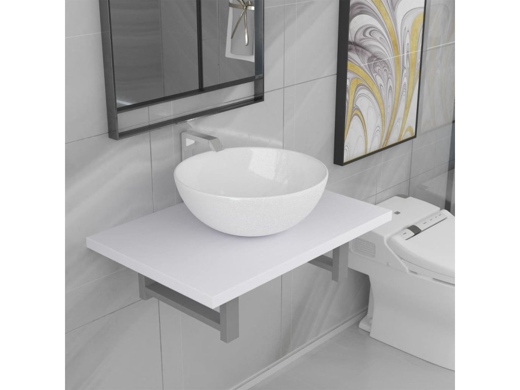 Koupelnová nástěnná police z pevného materiálu je výjimečně stabilní a odolná a perfektně doplňuje keramické umyvadlo. Keramické umyvadlo s vysoce lesklou povrchovou úpravou se snadno čistí vlhkým hadříkem. Polici můžete snadno upevnit ke zdi, potřebné držáky a montážní materiály jsou součástí balení.