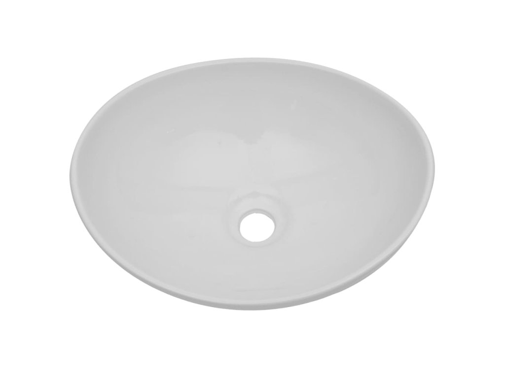 Naše praktické a nadčasové oválné umyvadlo s nástěnnou policí bude stylovým doplňkem do jakékoli koupelny, umývárny nebo toalety.
