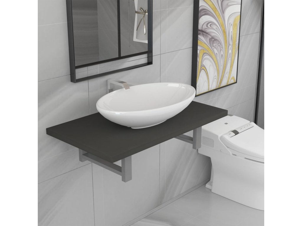 Naše praktické a nadčasové oválné umyvadlo s nástěnnou policí bude stylovým doplňkem do jakékoli koupelny, umývárny nebo toalety.