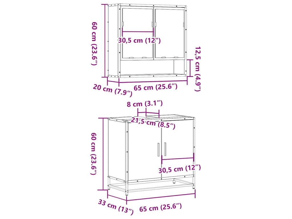 - Rozměry umyvadlové skříňky: 65 x 33 x 60 cm (Š x H x V)