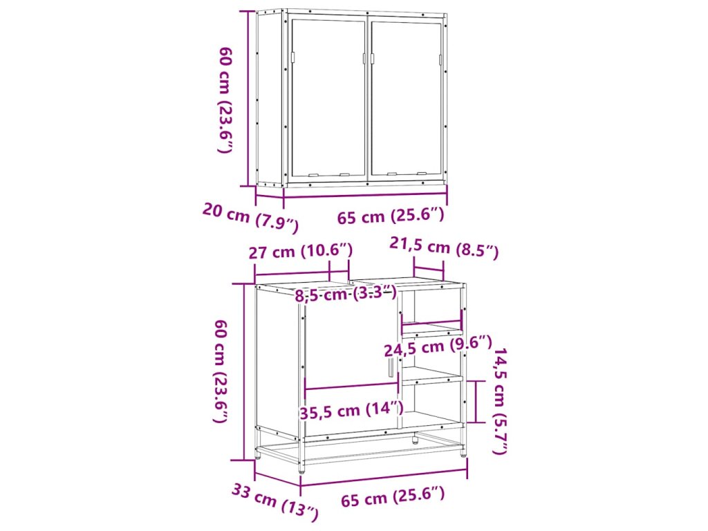 - Rozměry zrcadlové skříňky: 65 x 20 x 60 cm (Š x H x V)
