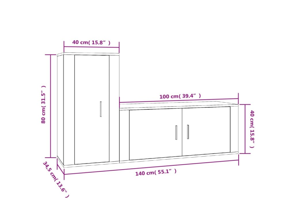 - 1x TV skříňka: 40 x 34,5 x 80 cm (D x Š x V)