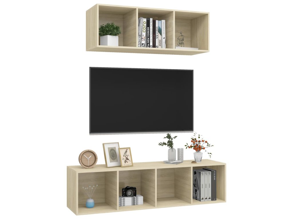 TV skříňky se připevňují ke zdi a vnesou do vašeho domova nadčasový styl. Jsou ideální pro přehledné ukládání a vystavení všech věcí, které si přejete mít hezky po ruce. Sada stereo skříněk se snadno čistí vlhkým hadříkem.