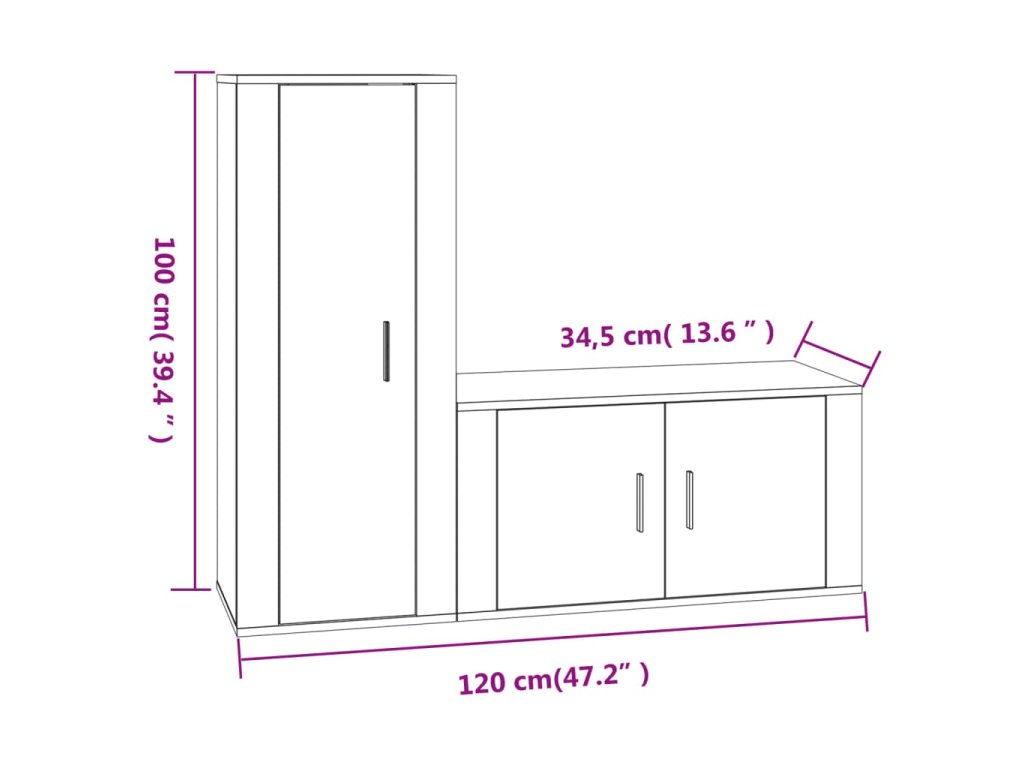 - 1x TV skříňka: 40 x 34,5 x 100 cm (Š x H x V)