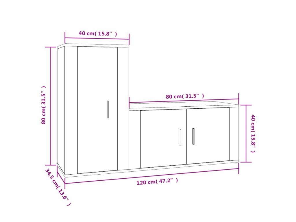 - 1x TV skříňka: 80 x 34,5 x 40 cm (D x Š x V)