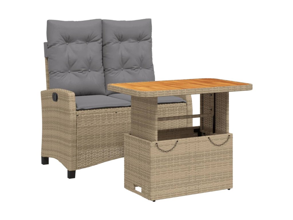 - Materiál: PE ratan, práškově lakovaná ocel, masivní akáciové dřevo s olejovou povrchovou úpravou