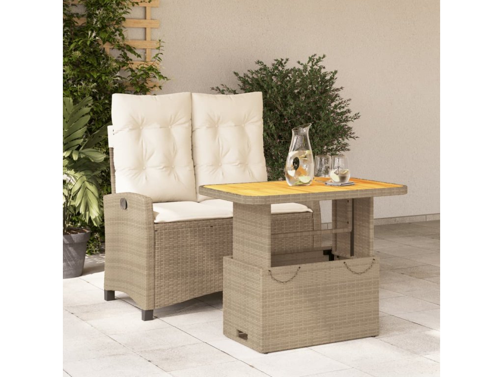 - Materiál: PE ratan, práškově lakovaná ocel, masivní akáciové dřevo s olejovou povrchovou úpravou