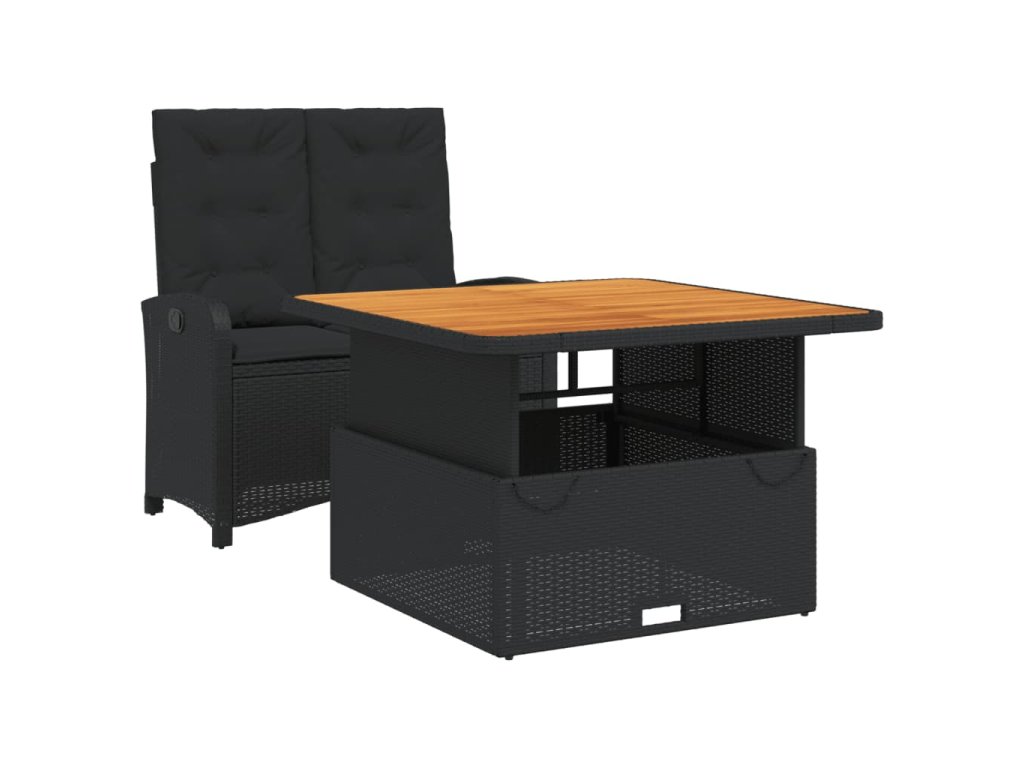 - Materiál: PE ratan, práškově lakovaná ocel, masivní akáciové dřevo s olejovou povrchovou úpravou