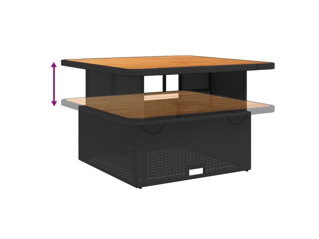 - Nastavitelná deska stolu: Stolní desku lze zvednout tak, aby stůl byl vyšší, takže jej můžete přeměnit z konferenčního stolku na jídelní. Skvěle se hodí pro návštěvy nebo pro stolování venku.