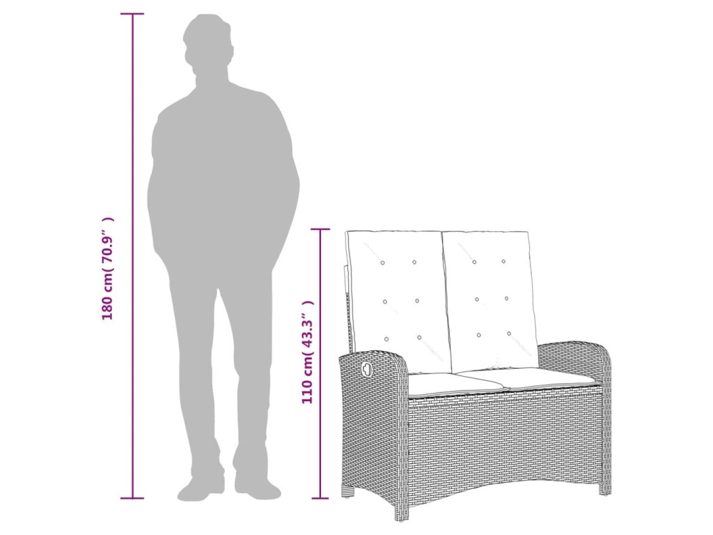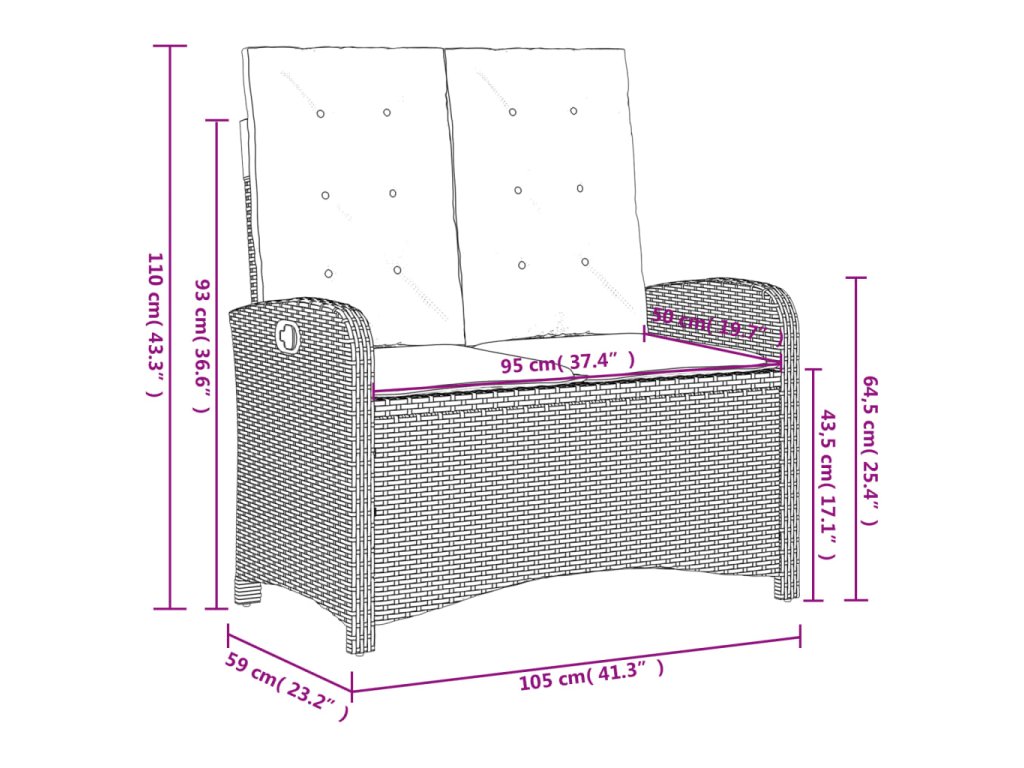 - Rozměry sezení: 105 x 59 x 93 cm (Š x H x V)