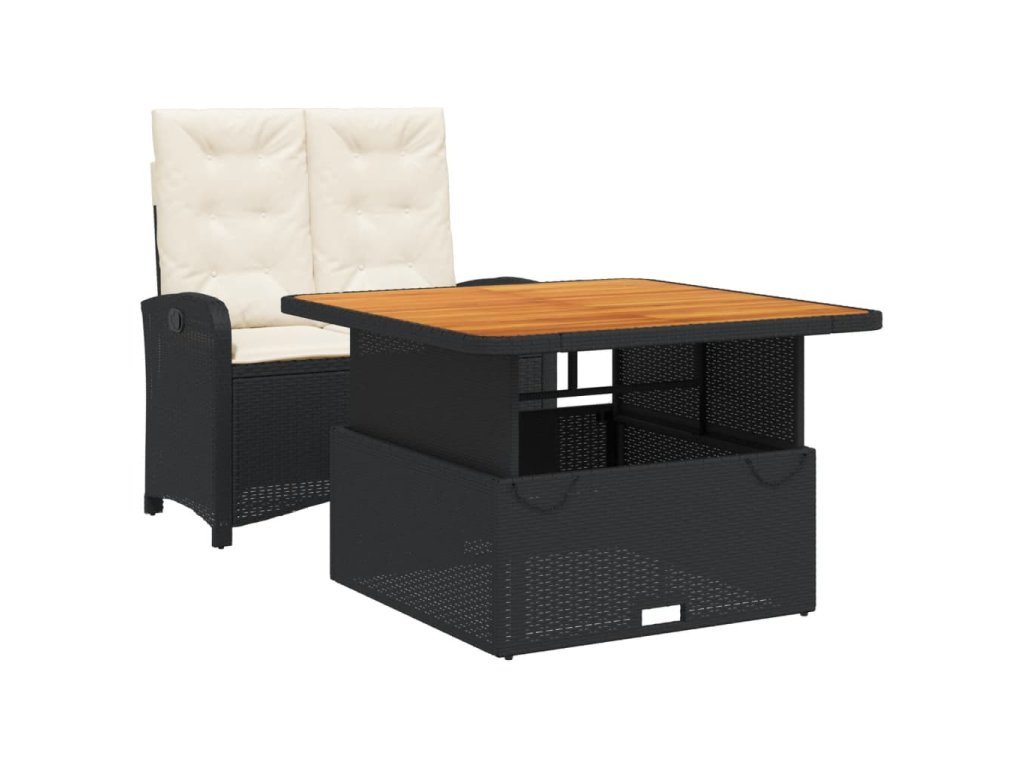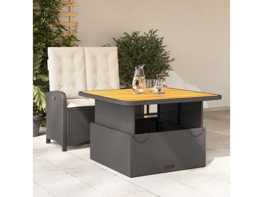 - Materiál: PE ratan, práškově lakovaná ocel, masivní akáciové dřevo s olejovou povrchovou úpravou