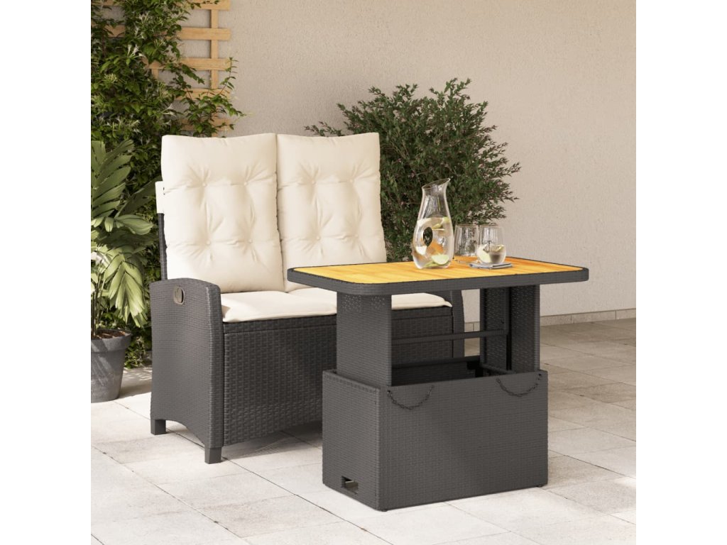 - Materiál: PE ratan, práškově lakovaná ocel, masivní akáciové dřevo s olejovou povrchovou úpravou