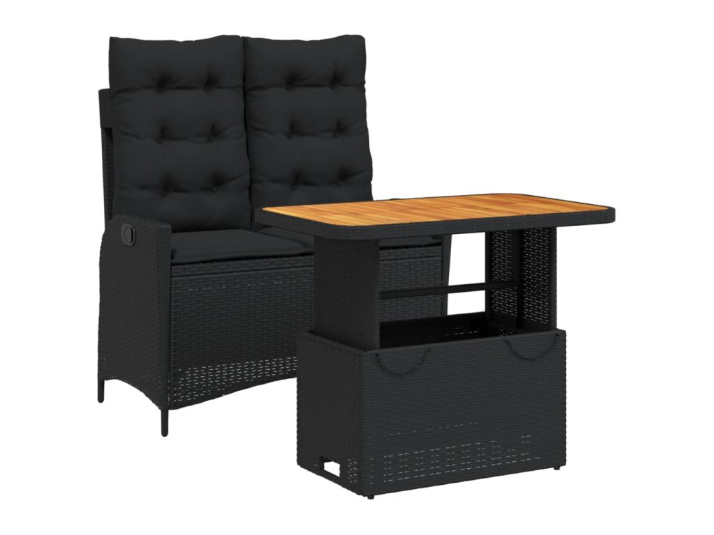- Materiál: PE ratan, práškově lakovaná ocel, masivní akáciové dřevo s olejovou povrchovou úpravou