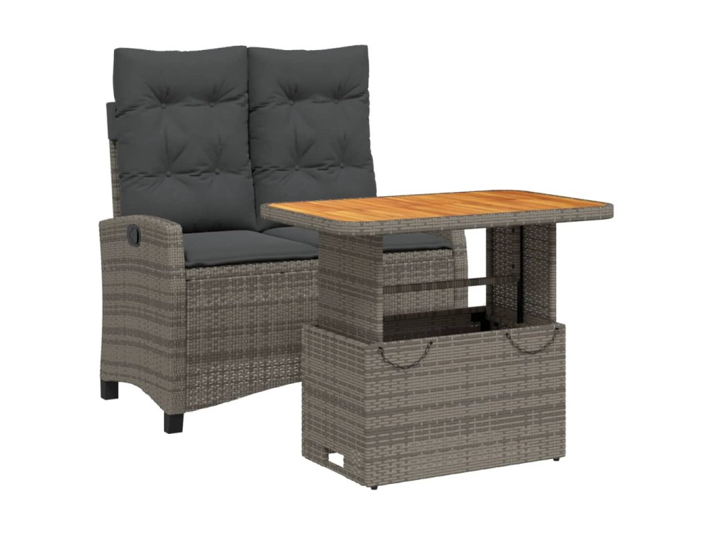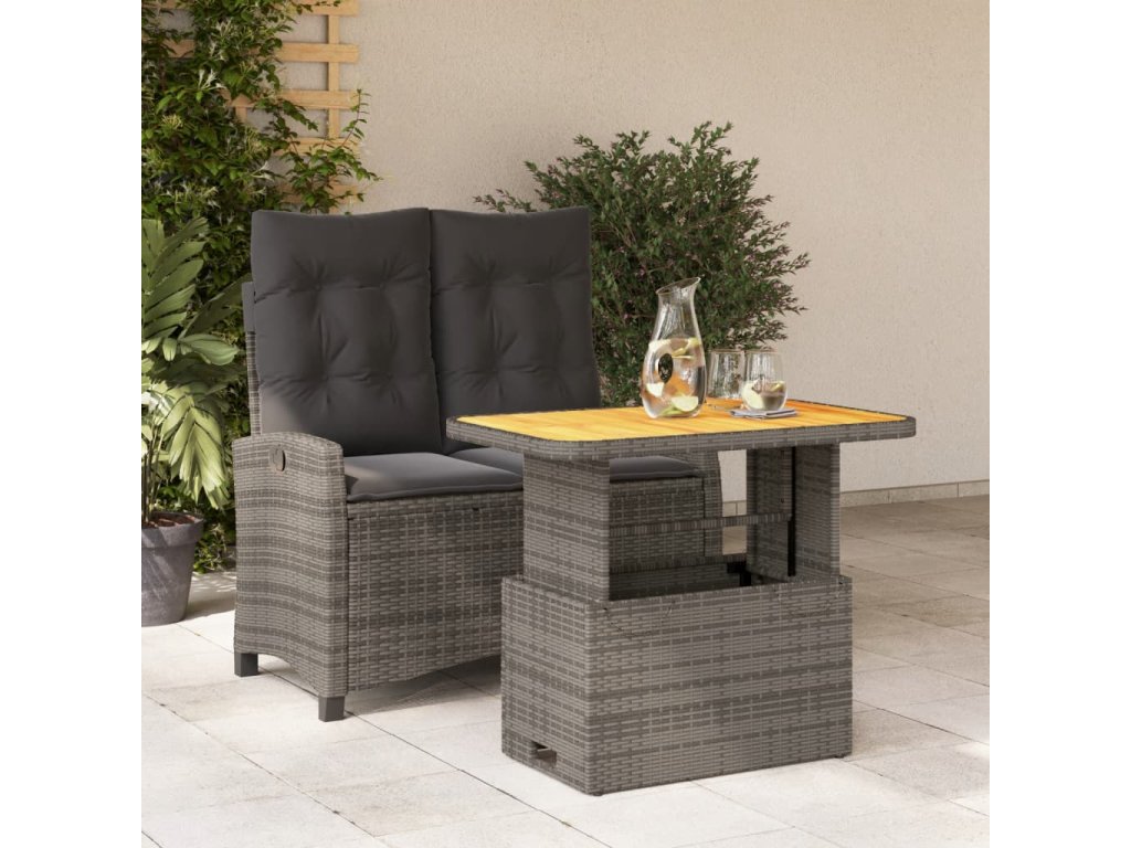 - Materiál: PE ratan, práškově lakovaná ocel, masivní akáciové dřevo s olejovou povrchovou úpravou