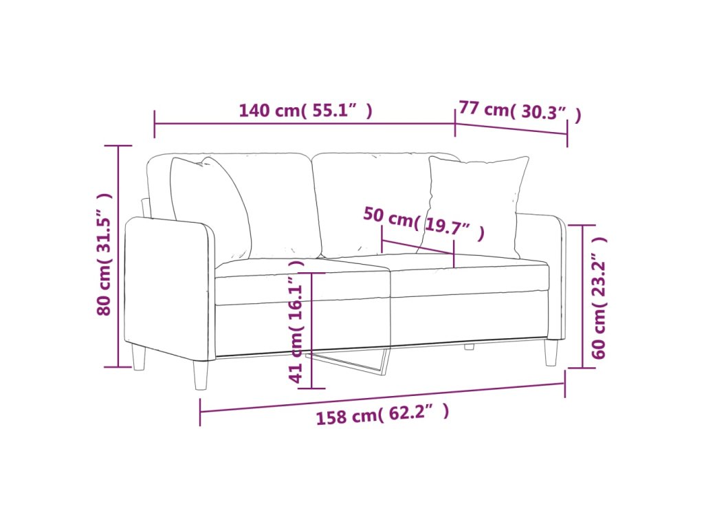 Tato dvoumístná pohovka, která vyniká moderním designem a polštáři, vám nabídne skvělé místo pro povídání, sledování televize nebo jen tak k odpočinku.