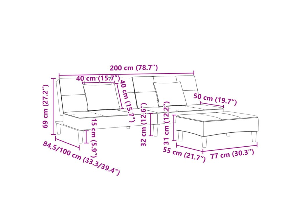 - Pohodlné sezení: Tato pohovka na spaní je potažena měkkým a pohodlným sametem. Sametová tkanina má měkký a hladký povrch, který je velmi příjemný na kůži, hřeje a poskytuje maximální pohodlí.