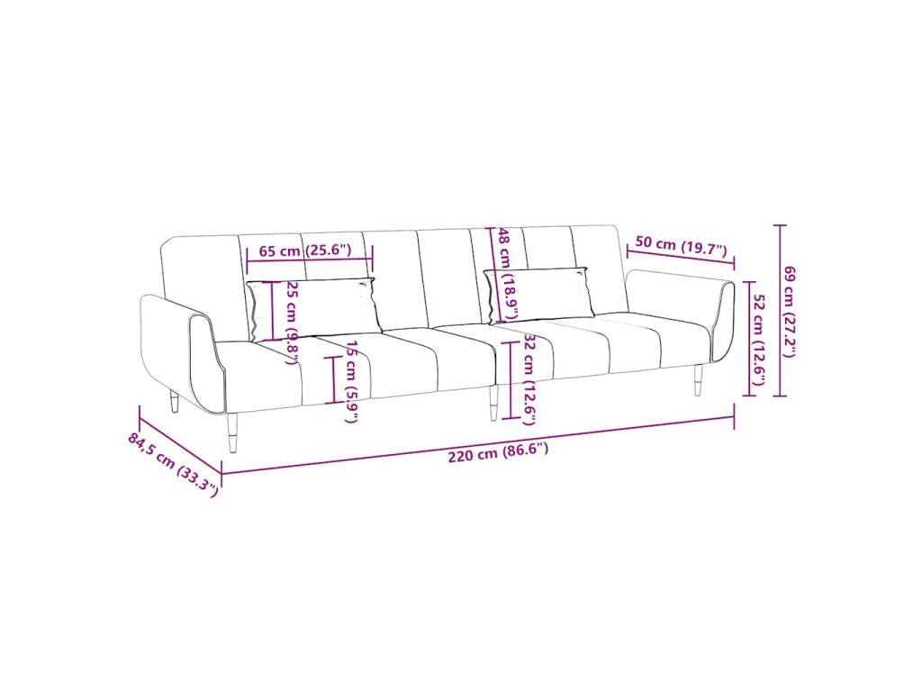 - Celkové rozměry: 220 x 84,5 x 69 cm (D x Š x V)